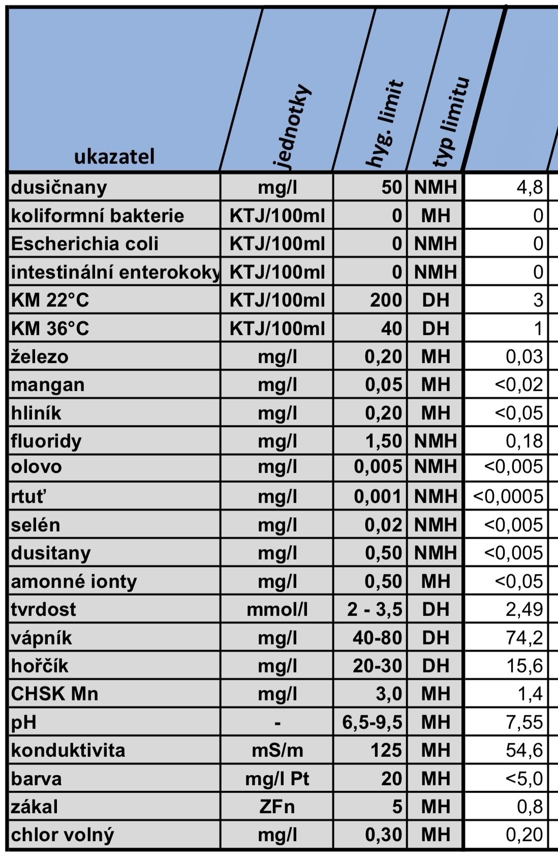 • Hg (rtuť): 0 mg/l (velmi toxické i v malých množstvích)